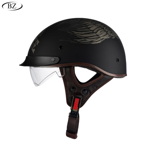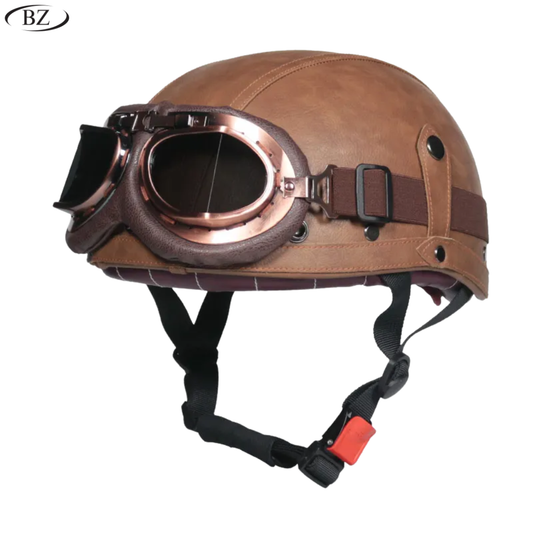 BikerZoneZ Vintage Half Helmet – DOT Approved | Unisex 4-Season Riding