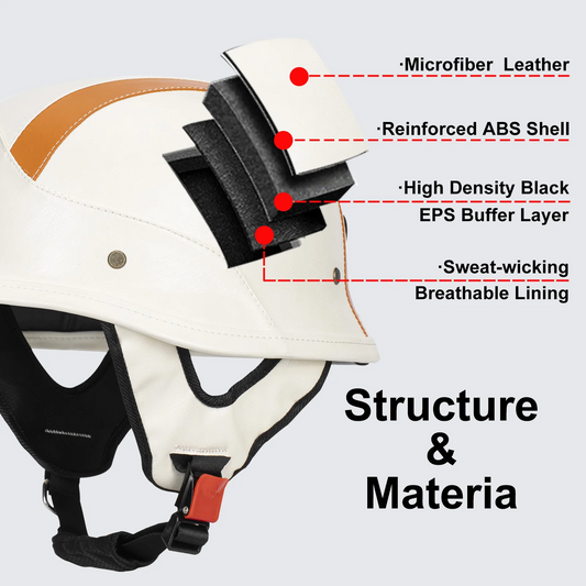 Retro German Leather Half Helmet Motorcycle - DOT Certification