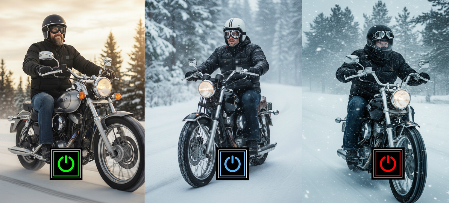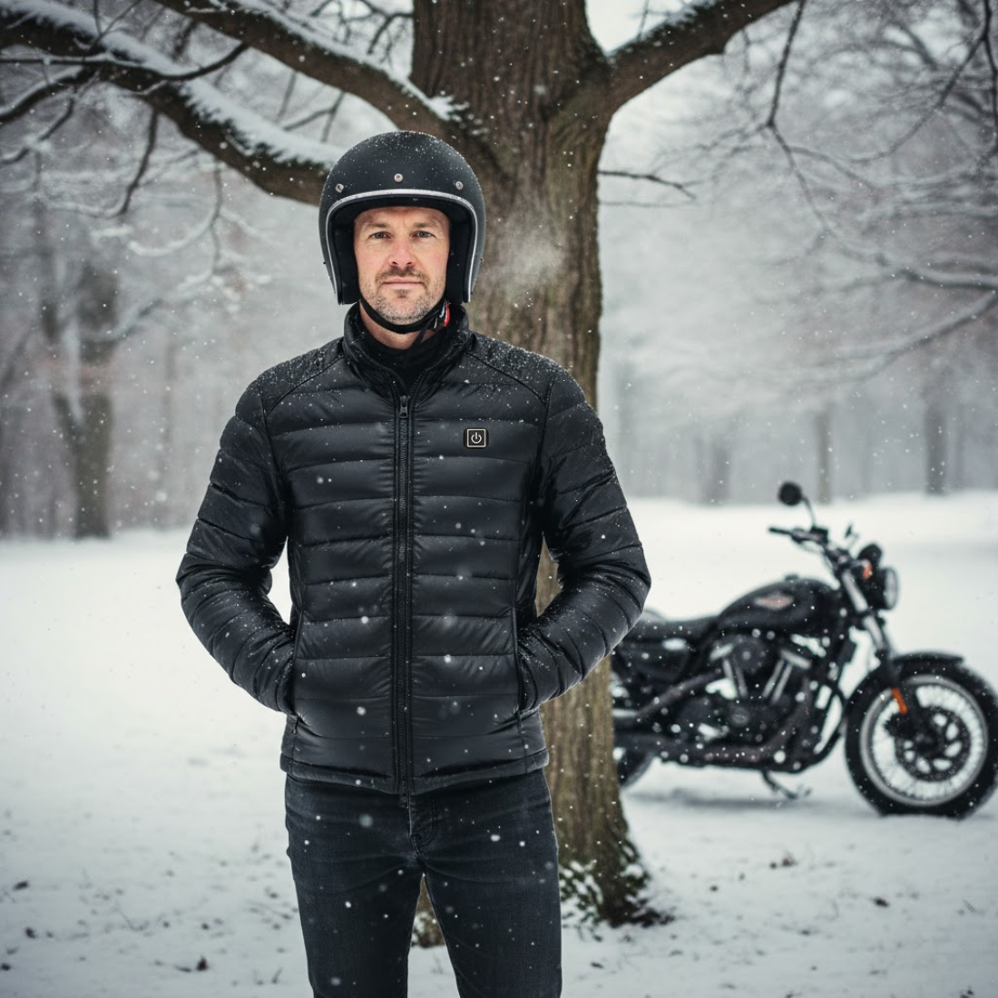 No wires. No limits. Our heated jacket runs on rechargeable power, giving you full freedom to move—whether you’re cruising the highway or hitting the backroads.